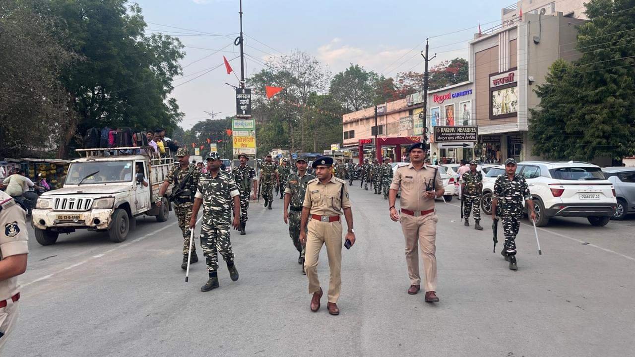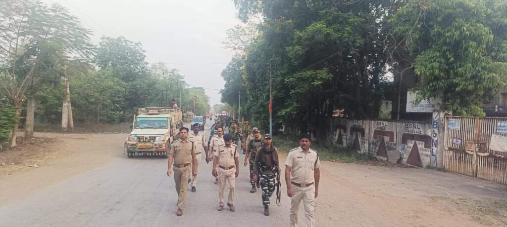 रायगढ़ जिले में पैरामिलिट्री और पुलिस के जवानों ने सभी थानाक्षेत्र में किया फ्लैग मार्च…..