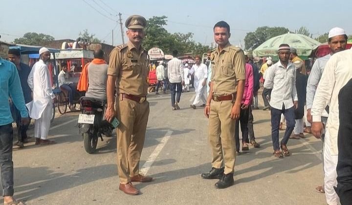 लखीमपुर खीरी जनपद के तिकुनिया कोतवाली क्षेत्र के बेलरायां में ईद-उल-अजहा (बकरीद) को लेकर ईदगाह और मस्जिदों में मुस्लिम समाज के लोगों ने अकीदत के साथ नमाज अदा करते हुए मुल्क में खुशहाली और अमन चैन की दुआ मांगी गई। बता दें तिकुनिया कोतवाली क्षेत्र के बेलरायां पुलिस चौकी के अंतर्गत बेलरायां, तकिया पुरवा, कुसाही, डांगा में ईद-उल-अजहा (बकरीद) की नमाज पढ़ने को लेकर मस्जिदों में बेलरायां चौकी प्रभारी अभिषेक कुमार यादव ने अपनी पुलिस टीम के साथ कड़ी सुरक्षा व्यवस्था में बड़े ही सांति पूर्वक ईद-उल-अजहा (बकरीद) की नमाज अदा की गई। आपको बता दें बेलरायां में ईद-उल-अजहा (बकरीद) की नमाज पढ़ने के लिए लोग सुबह से ही ईदगाह पर पहुंचना शुरू हो गए थे। तकिया पुरवा व कुसाही डांगा में बेलरायां चौकी प्रभारी अभिषेक कुमार यादव की कड़ी सुरक्षा में ईद उल अजहा बकरीद की नमाज अदा की गई। तकरीर करते हुए कुसाही मस्जिद के इमाम ने बताया कि इस्लाम धर्म इंसानियत का पैगाम देता है, लिहाजा एक अच्छा इंसान बनकर अपने कर्तव्य को पूरा करना चाहिए। ऐसे व्यक्ति से ही अल्लाह भी खुश होता है हमें दूसरों की मदद करनी चाहिए। दूसरों की मदद करना भी खुदा की इबादत है।