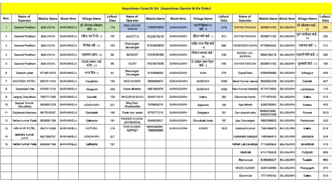 सारंगढ़ बिलाईगढ़ कलेक्टर धर्मेश साहू और सीएमएचओ डॉ एफ आर निराला के निर्देश पर सभी नागरिकों के आयुष्मान कार्ड बनाने के उद्देश्य से जिले के चयनित शहर और गांव में 26 अक्टूबर शनिवार को वृहद आयुष्मान कार्ड शिविर का आयोजन किया जाएगा। इस शिविर में सभी नागरिकों को आयुष्मान कार्ड बनाने के लिए राशन कार्ड और आधार कार्ड की फोटोकॉपी रखना अनिवार्य है। उल्लेखनीय है कि आयुष्मान कार्ड से पांच लाख रुपए का इलाज फ्री होगा।