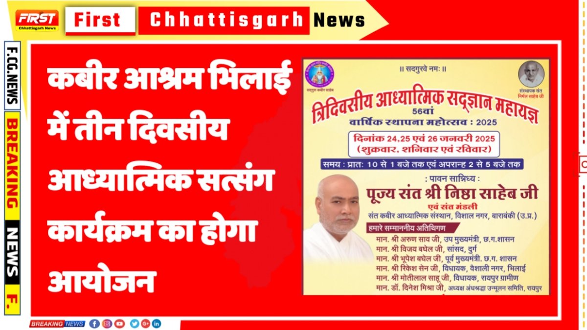 कबीर आश्रम भिलाई में तीन दिवसीय आध्यात्मिक सत्संग कार्यक्रम का होगा आयोजन