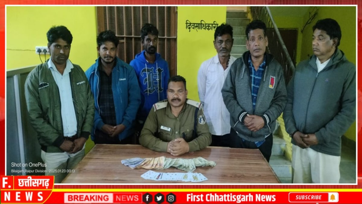 थाना बिलाईगढ़ पुलिस द्वारा जुआ फड़ पर छापा,06 जुआड़ी  गिरफ्तार