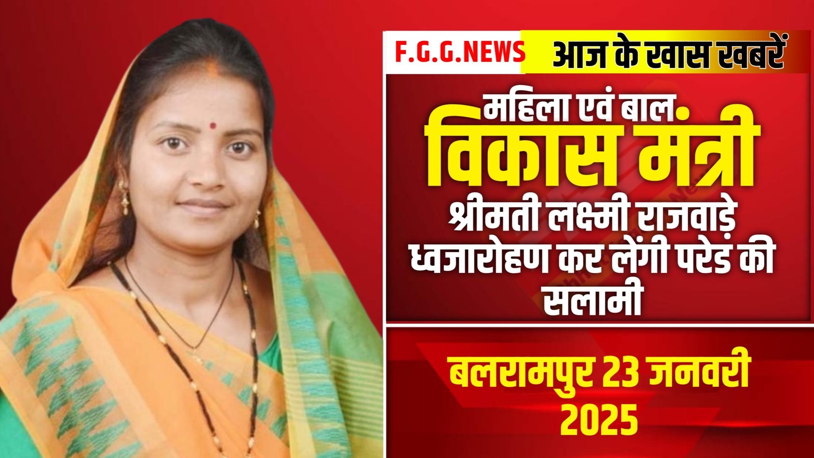 महिला एवं बाल विकास मंत्री श्रीमती लक्ष्मी राजवाड़े ध्वजारोहण कर लेंगी परेड की सलामी
