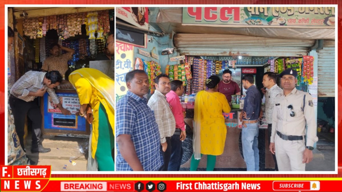 दुकानों मे तम्बाकू नियंत्रण बोर्ड लगाने और 18 वर्ष से कम के बच्चो को गुटखा तम्बाकू न बेचने का दिया निर्देश