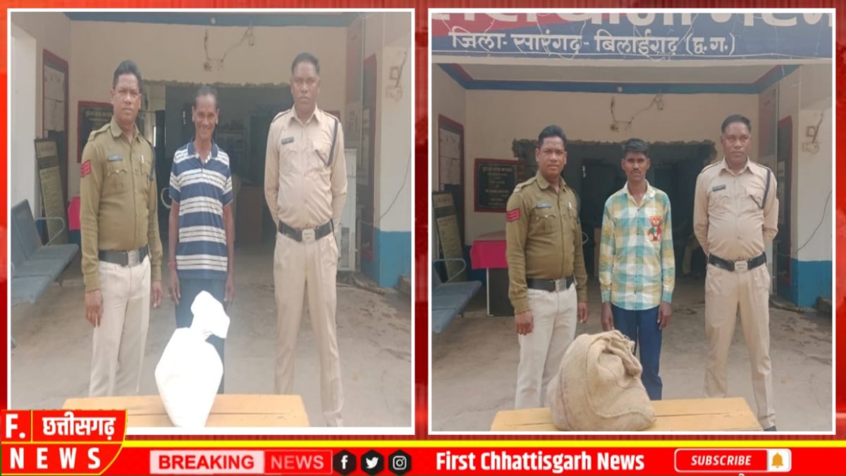 श्रीमान पुलिस अधीक्षक महोदय श्री पुष्कर शर्मा के द्वारा अवैध शराब,जुआ,सट्टा, गांजा जैसे थाना क्षेत्रों में होने वाली अवैधानिक कार्यो में संलिप्त व्यक्तियों के विरूद्ध सख्त कानूनी कार्यवाही करने की निर्देश पर अतिरिक्त पुलिस अधीक्षक महोदया निमिषा पांडे एवं SDOP विजय ठाकुर महोदय बिलाईगढ़ के मार्गदर्शन में थाना प्रभारी सउनि भगवती प्रसाद कुर्रे के नेतृत्व में दिनांक 30.01.2025 को भटगांव नगर में रेड कार्यवाही कर आरोपी कृष्ण लाल धीवर के कब्जे से बिक्री करने हेतु रखें एक जुट बोरा में 160 पाउच सफेद झिल्ली में कुल लगभग 40 लीटर अवैध कच्ची महुआ शराब कीमती 8000 रूपये एवं एक अन्य प्रकरण में आरोपी दुकालू राम नागवंशी के कब्जे से बिक्री करने रखा एक सफेद रंग की बोरी में 40 पाउच झिल्ली में लगभग 10 लीटर महुआ शराब कीमती 2000 रुपए जप्त कर,आरोपियों विरूद्ध अपराध धारा 34(2) आबकारी अधिनियम के अर्न्तगत पृथक पृथक कार्यवाही कर गिरफ्तार कर न्यायिक अभिरक्षा मे जेल भेजा गया है।संपूर्ण कार्यवाही में भगवती प्रसाद कुर्रे थाना प्रभारी भटगांव, प्र.आर. एकराम सिदार, महिला प्रधान आरक्षक नीलम रत्नाकर, आरक्षक शशिकांत खुटे, अशोक साहू,खिलावन बघेल,संतोष सिदार ,नरेंद्र चंद्रा एवं समस्त थाना स्टाफ का विशेष योगदान रहा।