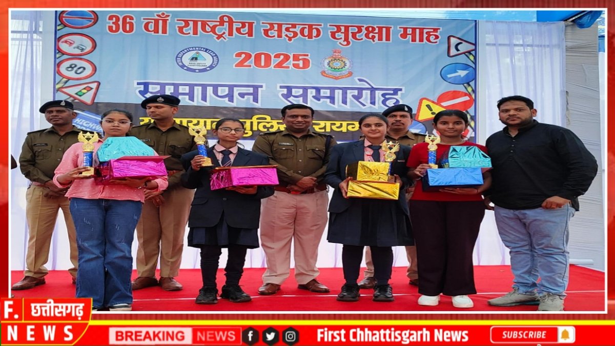 रायगढ़। पुलिस प्रशासन के द्वारा छत्तीसवां राष्ट्रीय सडक़ सुरक्षा माह 2025 के समापन समारोह में शहर की प्रतिष्ठित शैक्षणिक संस्था संस्कार पब्लिक स्कूल के विद्यार्थियों ने परचम लहराते हुए 6 अवार्ड प्राप्त करने में सफल हुए हैं। ज्ञात हो कि यातायात पुलिस विभाग के द्वारा 36वां राष्ट्रीय सडक़ सुरक्षा माह का आयोजन किया जा रहा है। इस आयोजन मे लोगों को जागरूक बनाने के लिए यातायात विभाग ने विभिन्न प्रकार की प्रतियोगिताएं करवाई जिसमें स्लोगन प्रतियोगिता, चित्रकला प्रतियोगिता, रंगोली प्रतियोगिता आदि शामिल है।