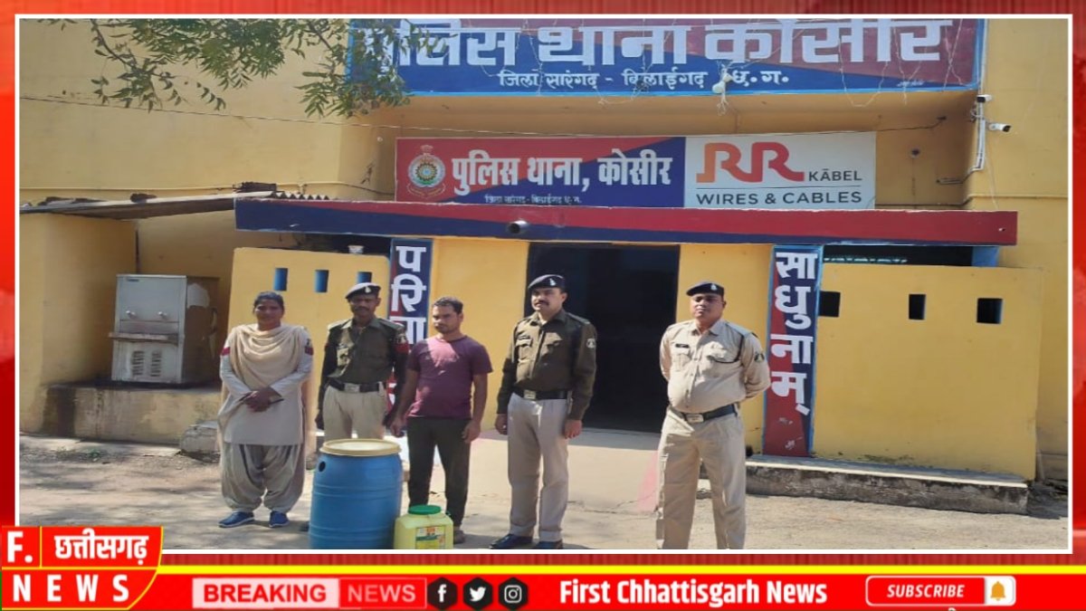 मामले का विवरण इस प्रकार है कि वरिष्ठ अधिकारियों द्वारा समस्त थाना /चौकी प्रभारियों को वर्तमान में त्रिस्तरीय पंचायत चुनाव आदर्श आचार संहिता में अवैध शराब, जुआ, सट्टा जैसे अवैधानिक कार्यों में संलिप्त व्यक्तियों के विरुद्ध सख्त कानूनी कार्यवाही करने हेतु निर्देश दिए गए है जिस पर अमल करते हुए श्रीमान पुलिस अधीक्षक श्री पुष्कर शर्मा, अतिरिक्त पुलिस अधीक्षक श्री कमलेश चंदेल, अनुविभागीय अधिकारी पुलिस सारंगढ श्रीमती स्नेहिल साहू, श्री अविनाश मिश्रा उप पुलिस अधीक्षक मुख्यालय सारंगढ के कुशल मार्गदर्शन पर दिनांक 03.02.2025 को थाना कोसीर पुलिस को जरिये मुखबीर से सूचना मिला कि ग्राम कोसीर का गिरधर लहरे पिता स्व सुधराम लहरे भारी मात्रा में अपने घर पर अवैध कच्ची महुआ शराब बिक्री करने हेतु रखा है कि सूचना पर निरीक्षक थाना प्रभारी कोसीर एन0एल0राठिया द्वारा एक टीम गठित कर रवाना किया गया कोसीर पुलिस मौका स्थल पहुंचकर रेड कार्यवाही किया आरोपी गिरधर लहरे पिता स्व सुधराम लहरे उम्र 32 वर्ष साकिन कोसीर के कब्जे से एक नीला रंग की 100 लीटर क्षमता वाली प्लास्टिक ड्रम में भरी हुई 100 लीटर महुआ शराब एवं एक पीला रंग की पंद्रह लीटर क्षमता वाली प्लास्टिक डिब्बा में भरी हुई 08 लीटर महुआ शराब कुल 108 लीटर महुआ शराब कीमती 10800रू मिला जिसे समक्ष गवाहन वजह सबूत में जप्त कर कब्जा पुलिस में लिया गया ।मामला अजमानतीय प्रकृति का होने से आरोपी को गिरप्तार कर न्यायिक अभिरक्षा मे भेजा गया है।