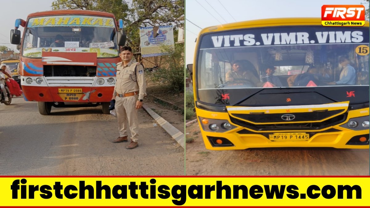 पुलिस अधीक्षक मैहर श्री सुधीर अग्रवाल के निर्देश पर यातायात प्रभारी उपनिरीक्षक राशिद खान द्वारा आज लोक परिवहन की 45 बसों एवम 02 कॉलेज बसों को चैक किया गया। इनमें से 19 बसों में मेडिकल किट , अग्निशामक यंत्र एवम दस्तावेज संबंधी कमियां पाए जाने पर बस चालको  के विरुद्ध चालानी कार्यवाही की जाकर 11000 रूपये समन शुल्क वसूल किया गया है। कॉलेज बसों में आपात स्थिति हेतु अग्निशामक यंत्र एवम मेडिकल किट के साथ ही वाहन के कागजात सही पाए ।