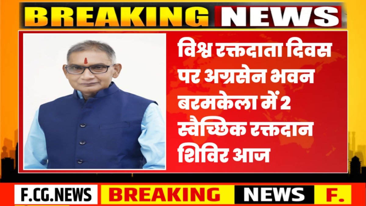 विश्व रक्तदाता दिवस पर अग्रसेन भवन बरमकेला में 2 स्वैच्छिक रक्तदान शिविर आज