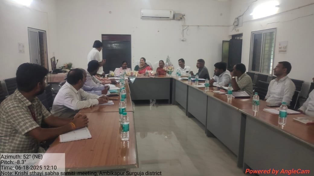 अम्बिकापुर न्यूज। कृषि स्थायी समिति की जिला स्तरीय बैठक बुधवार को उप संचालक उद्यान कार्यालय के सभाकक्ष में जिला पंचायत अध्यक्ष श्रीमती निरूपा सिंह की अध्यक्षता में सम्पन्न हुई। बैठक में कृषि स्थायी समिति की सभापति श्रीमती दिव्या सिंह सिसोदिया तथा समिति के सदस्य श्री विजय अग्रवाल एवं श्रीमती नानमणी पैकरा उपस्थित रहे। इस दौरान कृषि, उद्यान, पशुपालन, मछली पालन, जिला सहकारी केन्द्रीय बैंक, छ.ग. राज्य सहकारी विपणन संघ, बीज निगम, कृषि विज्ञान केन्द्र, प्रधानमंत्री फसल बीमा योजना के जिला स्तरीय अधिकारी एवं कर्मचारी उपस्थित थे।
