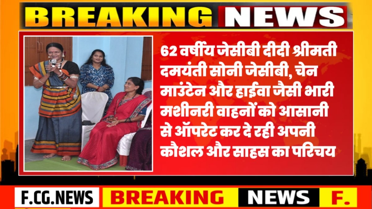 62 वर्षीय जेसीबी दीदी श्रीमती दमयंती सोनी जेसीबी, चेन माउंटेन और हाईवा जैसी भारी मशीनरी वाहनों को आसानी से ऑपरेट कर दे रही अपनी कौशल और साहस का परिचय