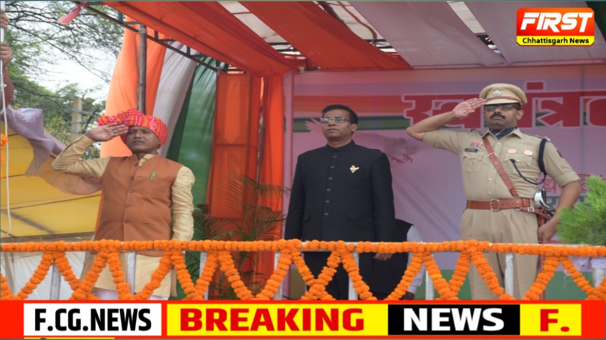 सारंगढ़ में मुख्य अतिथि राधेश्याम राठिया ने किया ध्वजारोहण