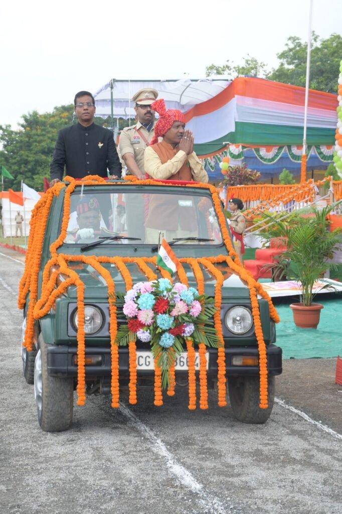 सांसद राठिया ने परेड निरीक्षण कर समारोह में उपस्थित सभी नागरिकों, स्कूली बच्चों आदि का अभिवादन किया। इसके बाद हर्ष फायर किया गया। मुख्य अतिथि राठिया ने छत्तीसगढ़ के मुख्यमंत्री जी के आम जनता के नाम संदेश का वाचन किया। तदोपरांत सांसद राधेश्याम राठिया ने हर घर तिरंगा, सुपोषित सारंगढ़ बिलाईगढ़ आदि शब्दों से सजे गुब्बारों को आसमान में उड़ाया और परेड कमांडरों से परिचय प्राप्त किया और शहीद परिवार के परिजनों को शाल श्रीफल भेंटकर उनका वंदन किया। इस दौरान कलेक्टर डॉ संजय कन्नौजे और पुलिस अधीक्षक आञ्जनेय वार्ष्णेय उपस्थित थे।