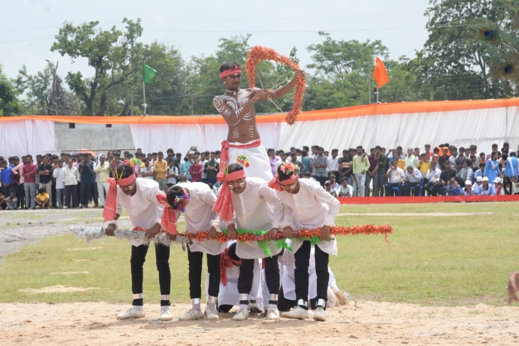मुख्य समारोह में सारंगढ़ के  स्वामी आत्मानंद विद्यालय,शासकीय कन्या उच्चतर माध्यमिक विद्यालय (सेजेस), सरस्वती शिशु मंदिर, मोना मॉर्डन, अशोका पब्लिक स्कूल, संत थॉमस, सीपीएम स्कूल और शासकीय हाईस्कूल हरदी के स्कूली बच्चों ने देशभक्ति, आरंभ है प्रचंड, वीर शिवाजी, छत्तीसगढ़ी आदि गानों पर मनमोहक प्रस्तुति दी।