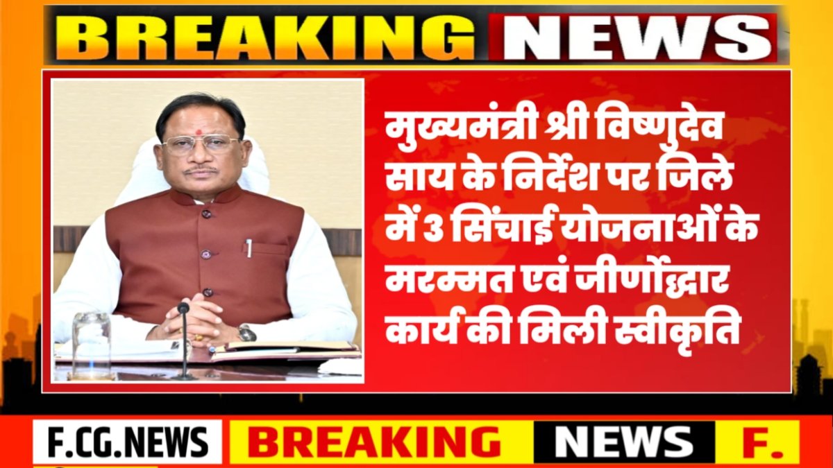 मुख्यमंत्री श्री विष्णुदेव साय के निर्देश पर जिले में 3 सिंचाई योजनाओं के मरम्मत एवं जीर्णोद्धार कार्य की मिली स्वीकृति
