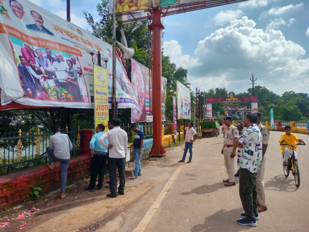 ➡️ मामले का संक्षिप्त विवरण इस प्रकार है कि सुगम यातायात व्यवस्था व नागरिकों की सुरक्षा के मद्देनजर , वरिष्ठ पुलिस अधीक्षक जशपुर शशि मोहन सिंह ने, यातयात पुलिस को, अवैध रूप से सड़को के किनारे लगे अनावश्यक, बैनर, पोस्टर, होर्डिंग को निकालने हेतु आदेशित किया गया है, जिसके मद्देनजर यातायात पुलिस के द्वारा नगर पालिका जशपुर की सहायता से अनावश्यक व अनधिकृत रूप से, बिना सुरक्षा मानकों के लगाए गए होर्डिंग,पोस्टर, व बैनरों को निकाला जा रहा है, साथ ही भविष्य में ऐसा करते पाए जाने पर,संबंधितों के विरुद्ध कड़ी कानूनी कार्रवाई की जाएगी।