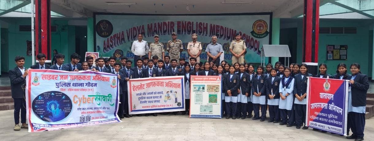 दंतेवाड़ा में स्कूली बच्चों को यातायात नियम और साइबर फ्रॉड से बचाव की सीख | पुलिस की अनोखी पहल