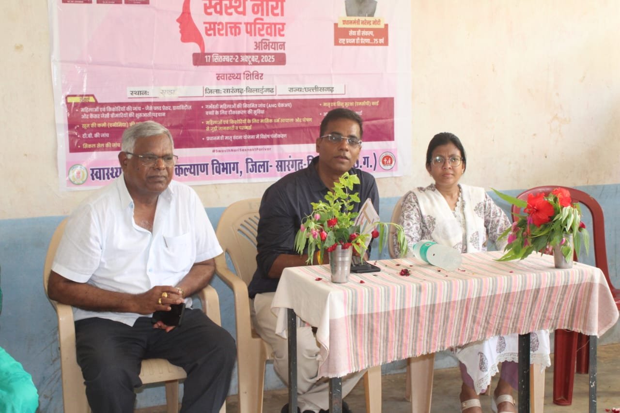 ग्राम संडा के शिविर में 7 गर्भवती माताओं की जांच की गई।मेंस्ट्रुअल हाइजीन के बारे में 12 किशोरी बालिका को जानकारी दी गई। 54 महिलाओं को एनसीडी की स्क्रीनिंग, 32 की सिकलिंग और 42 महिलाओं की हीमोग्लोबिन की जांच की गई। इस अवसर पर मुख्य चिकित्सा एवं स्वास्थ्य अधिकारी डॉ एफ आर निराला, खंड चिकित्सा अधिकारी डॉ अवधेश पाणिग्रही, जिला प्रबंधक नंदलाल इजरदार सीईओ जनपद पंचायत अजय पटेल, स्वास्थ्य अमला हरिशंकर पटेल, पुरुष भोलाशंकर श्रीवास, महिला सुनीता जायसवाल और सभी मितानिन उपस्थित थे।