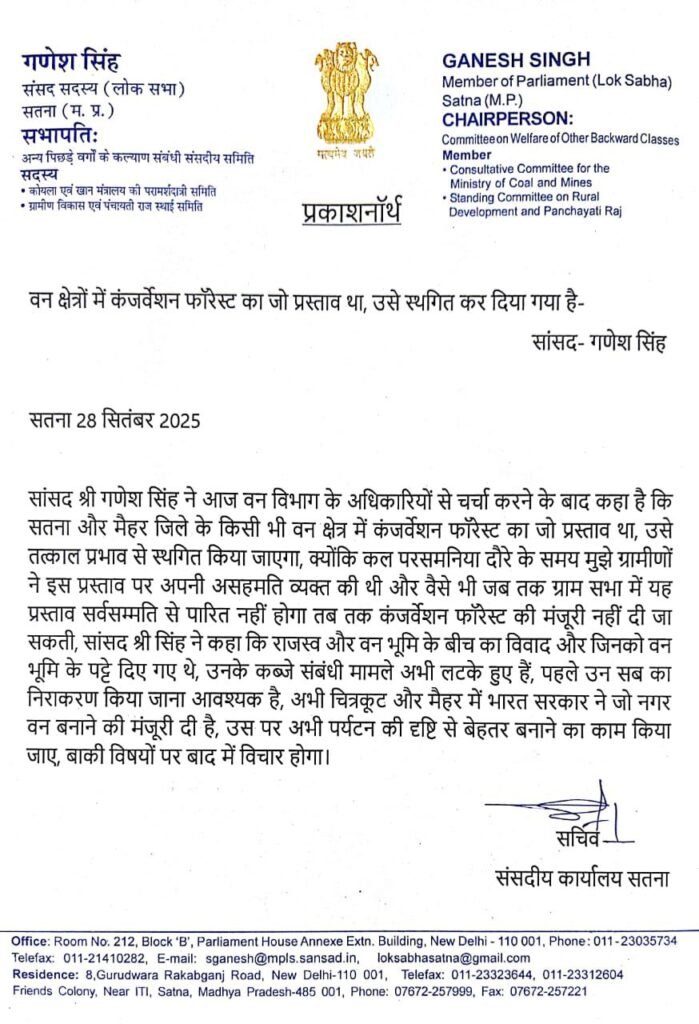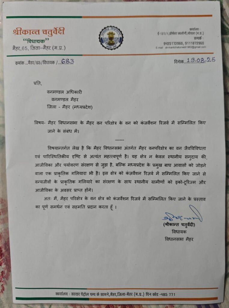 मुख्यमंत्री डॉ मोहन यादव की सरकार आदिवासी भाईयो के साथ सदैव उनके हित मे खड़ी है , मैहर जिले से वन विभाग के द्वारा किसी भी प्रकार का कोई प्रस्ताव नहीं भेजा गया है!!आने वाले समय मे मुख्यमंत्री जी की मंशा अनुरूप आदिवाशी भाईयो को वन भूमि में पट्टा दिया जायेगा ,विधायक श्रीकान्त चतुर्वेदी सदैव आदिवासी भाइयों के साथ खड़े मिलेंगे !!