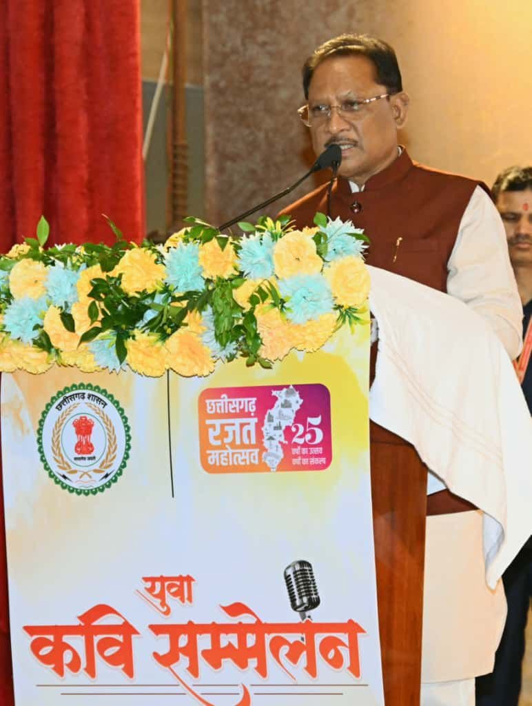छत्तीसगढ़ की साहित्यिक, सांस्कृतिक और कलात्मक परंपराओं को नई ऊर्जा देने के उद्देश्य से विगत रात्रि आयोजित राज्य स्तरीय युवा कवि सम्मेलन में मुख्यमंत्री श्री विष्णु देव साय ने प्रभु श्रीराम के ननिहाल और माता शबरी की पावन भूमि को नमन करते हुए कहा कि छत्तीसगढ़ की धरती सदा से साहित्य और संस्कृति की धरा रही है।