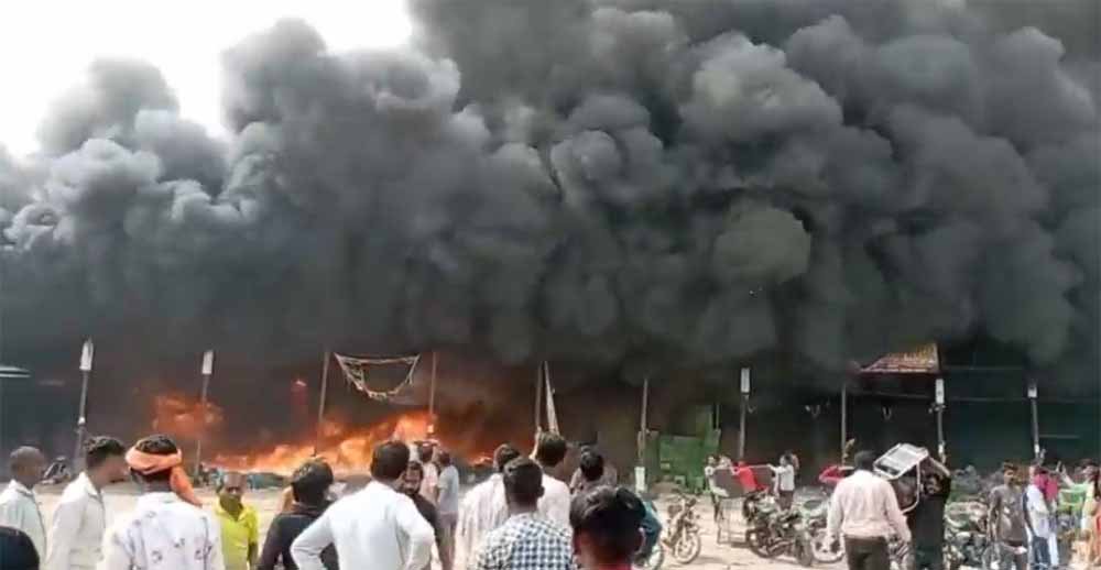 थोक सब्जी मंडी में भीषण आग, लाखों की संपत्ति जलकर खाक
