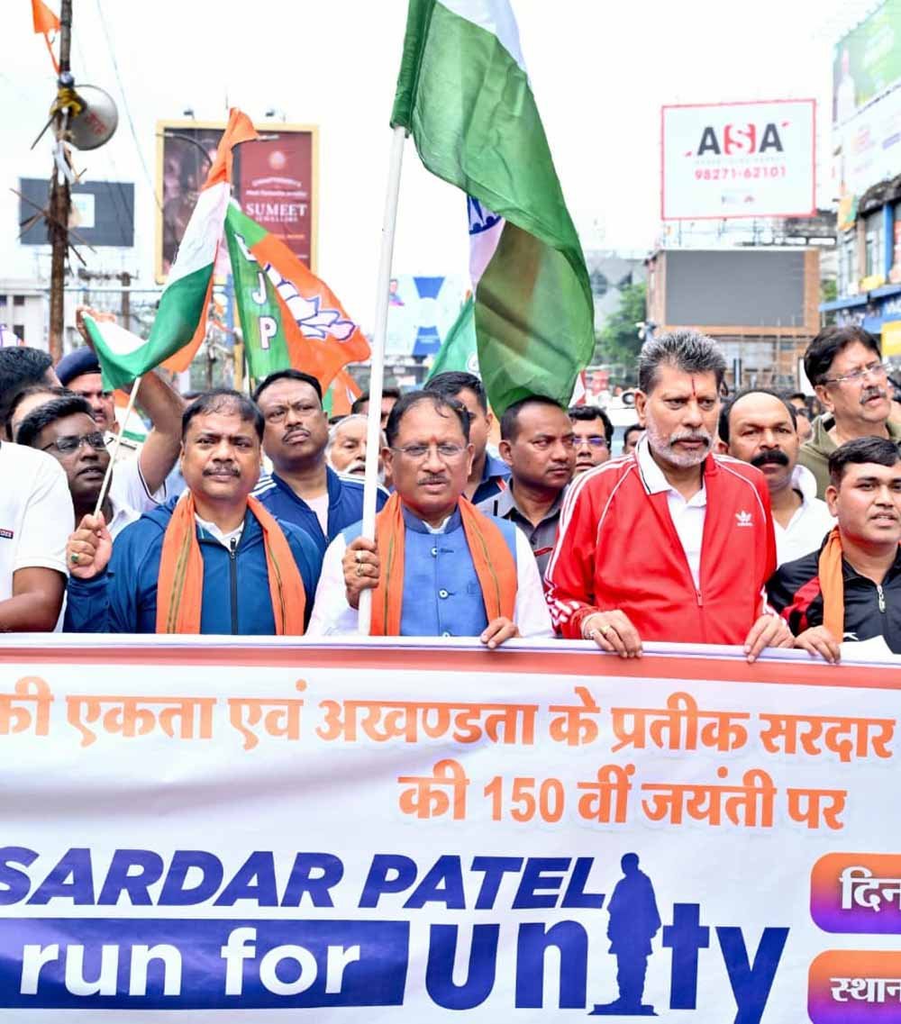 इस अवसर पर मुख्यमंत्री साय ने स्कूली बच्चों, जनप्रतिनिधियों और आमजनों के साथ राजधानी रायपुर के शास्त्री चौक से शारदा चौक तक आयोजित ‘एकता दौड़’ में शामिल होकर ‘एक भारत, श्रेष्ठ भारत’ का संदेश दिया।