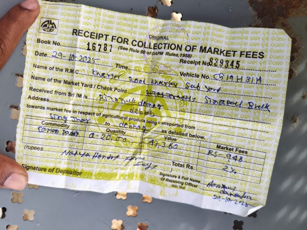 मंडी रशीद में न सिल न साइन.. मुख्यालय के धान करोबारी उड़ीसा  के जो आर एम सी रशीद चेक पोस्ट में तैनात कर्मचारियो को दिखा रहे हैं उसमे न तो सिल लगा है और न समय एवम् सक्षम अधिकारी का स्पष्ट नाम  हैं ऐसे में यह रशीद को लेकर भी सवाल खडा किया जा रहा है सबसे खास बात तो यह है बिना रशीद की तसदिग किए कर्मचारी भी चेक पोस्ट से उड़ीसा से ला रहे धान गाड़ी को छोड़ देते हैं तभी आर एम सी रशीद कि आड़ में हजारों क्विंटल धान कि हेराफेरी हों रहीं हैं।
