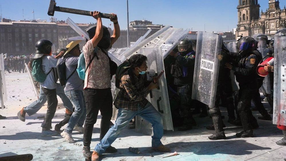 न्यूज एजेंसी के प्रत्यक्षदर्शियों के अनुसार, मेक्सिको सिटी में नकाबपोश प्रदर्शनकारियों के एक छोटे समूह ने राष्ट्रपति क्लाउडिया शीनबॉम आवास नेशनल पैलेस के चारों ओर लगी बाड़ को तोड़ दिया. इसके जवाब में दंगा पुलिस ने आंसू गैस के गोले दागे और प्रदर्शनकारियों को खदेड़ दिया.