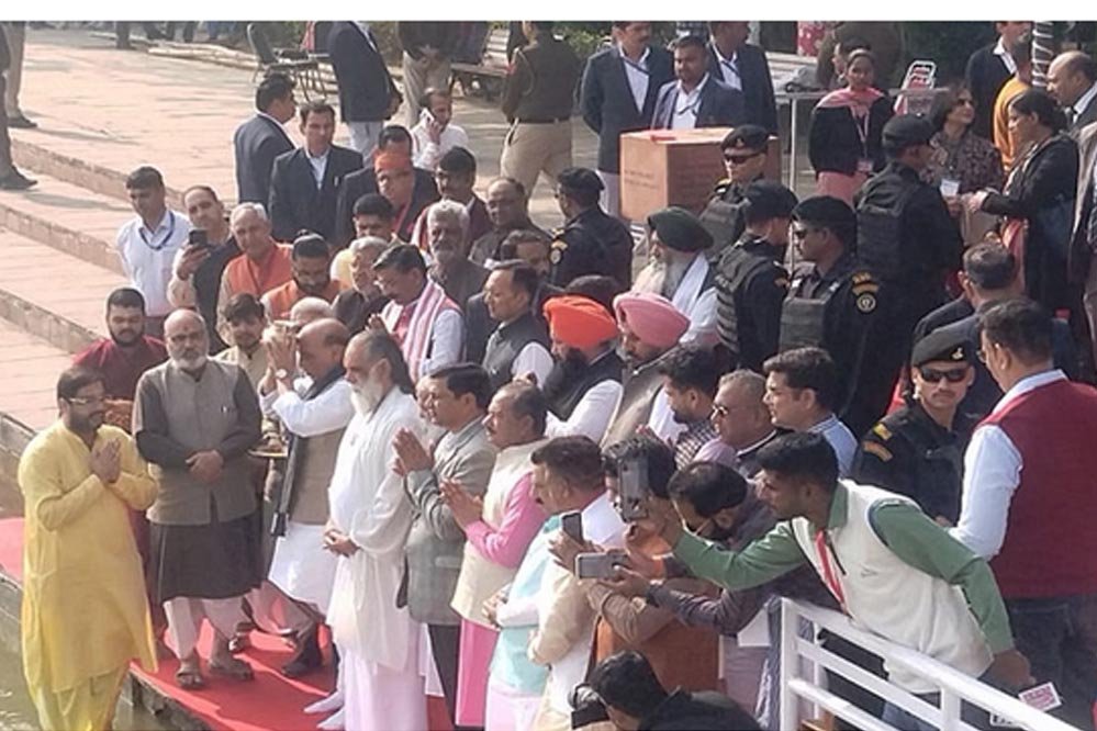 रक्षा मंत्री राजनाथ सिंह ने कुरुक्षेत्र में ब्रह्म सरोवर पर पूजा की, हरियाणा पवेलियन का उद्घाटन किया