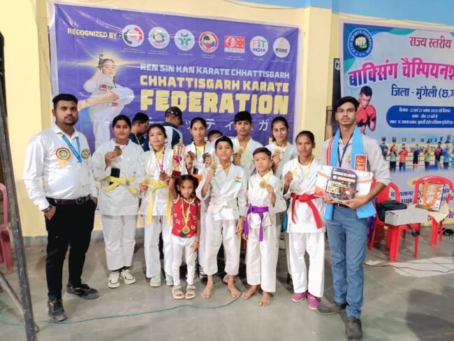 सारंगढ़।रेन सिन कान कराते छत्तीसगढ़(छत्तीसगढ़ कराते फेडरेशन) के तत्वधान मे 22 व 23 नवम्बर 2025 को “खेलो छत्तीसगढ़ यूथ कराते गेम्स” का आयोजन डॉ. श्यामा प्रसाद मुखर्जी स्टेडियम मुंगेली में किया गया था। इस टूर्नामेंट में छत्तीसगढ़ के 23 जिलों के कराते खिलाड़ियों ने अपने अपने जिलों का प्रतिनिधित्व किया, जिसमे सारंगढ़ के शिवा कराते अकादमी के बच्चो ने अपने जिले सारंगढ़–बिलाईगढ़ का प्रतिनिधित्व किया।