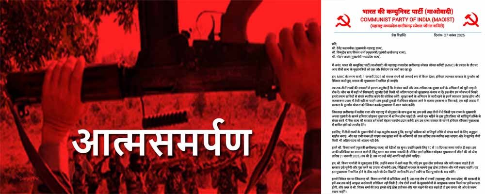नवा रायपुर में आज से शुरू हुए डीजीपी-आईजी कांफ्रेंस के बीच एक महत्वपूर्ण घटना घटित हुई है. सीपीआई-एम महाराष्ट्र-मध्यप्रदेश-छत्तीसगढ़ जोन ओर से छत्तीसगढ़, मध्यप्रदेश और महाराष्ट्र के मुख्यमंत्रियों के नाम पत्र जारी कर एक जनवरी 2026 को सामूहिक आत्मसमर्पण की घोषणा की है, लेकिन इसके पहले न केवल छत्तीसगढ़ बल्कि महाराष्ट्र और मध्यप्रदेश की मुख्यमंत्रियों से नक्सलियों के खिलाफ चलाए जा रहे अभियान को रोकने की मांग की है.