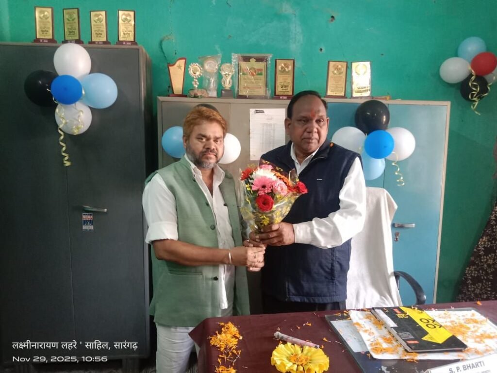 प्राचार्य की पदभार संभालने के पूर्व व्याख्याता रामेश्वर प्रसाद जांगड़े के मार्गदर्शन में व्याख्याता एस पी भारती के स्कूल पहुंचते ही द्वार पर शिक्षकों और छात्रों ने आरती उतारकर पुष्प गुलदस्ता भेंट कर स्वागत किए । वहीं स्कूल परिसर में अभिनंदन समारोह का आयोजन किया गया । सर्व प्रथम मां सरस्वती की तैल चित्र में पुष्प अर्पित कर अभिनंदन समारोह का शुभारंभ किया गया । कार्यक्रम को व्याख्याता  रामेश्वर प्रसाद जांगड़े आगे बढ़ते हुए प्राचार्य एस पी भारती के जीवन पर प्रकाश डालते हुए उनके कार्यों को अवगत कराए।