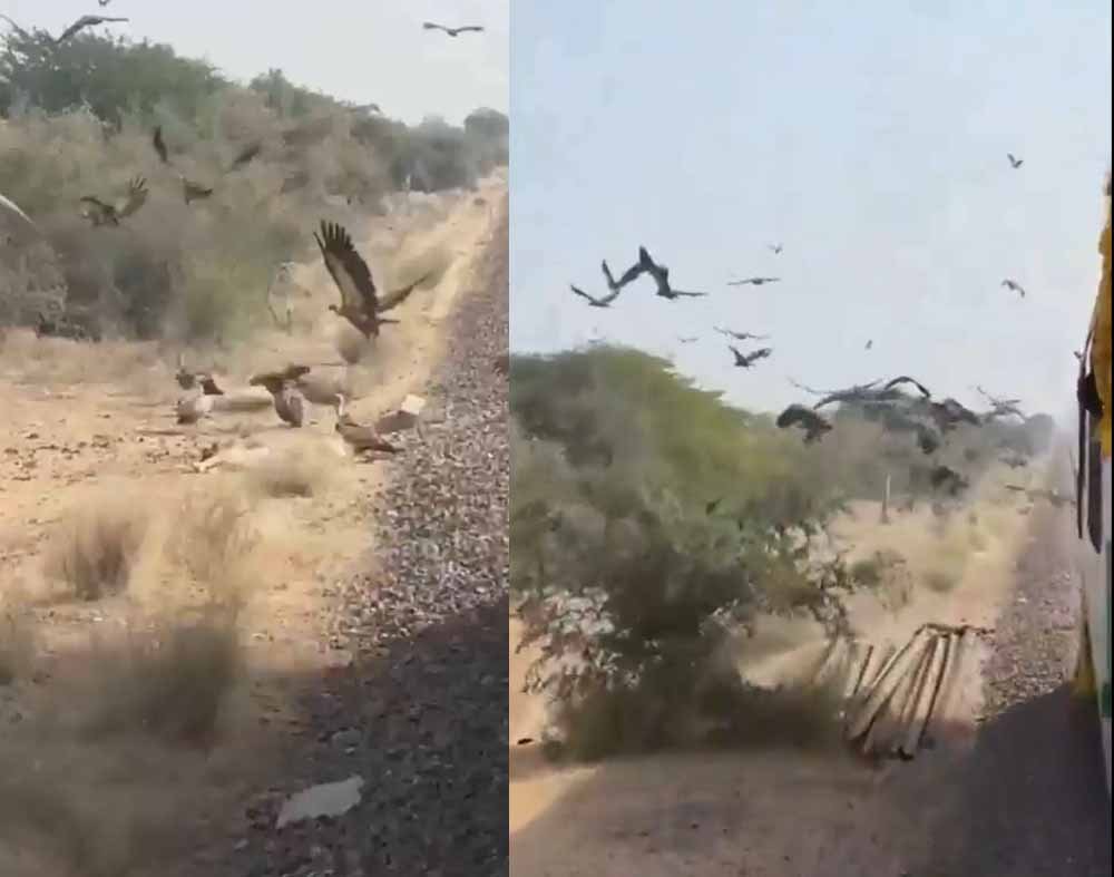 राजस्थान के जैसलमेर जिले के लाठी क्षेत्र में एक ऐसी घटना घटी जिसने रेलवे के लोको पायलट की मानवता और वन्यजीव प्रेम की मिसाल कायम कर दी। रेल मंत्री अश्विनी वैष्णव द्वारा हरी झंडी दिखाकर रवाना की गई जोधपुर-जैसलमेर स्वर्णनगरी एक्सप्रेस के लोको पायलट ने ट्रेन की रफ्तार इसलिए धीमी कर दी, क्योंकि रेलवे ट्रैक के ठीक किनारे दुर्लभ भारतीय गिद्धों का एक बड़ा झुंड मृत मवेशी को अपना निवाला बना रहा था। गिद्धों की जान बचाने के लिए ड्राइवर ने न सिर्फ ट्रेन धीमी की, बल्कि लगातार हॉर्न बजाकर उन्हें सुरक्षित उड़ान भरने का मौका दिया। इस घटनाक्रम का वीडियो सोशल मीडिया पर तेजी से वायरल हो रहा है। वीडियो वायरल होने के बाद देशभर के पर्यावरण प्रेमी, पक्षी विशेषज्ञ और आम लोग लोको पायलट की जमकर तारीफ कर रहे हैं।