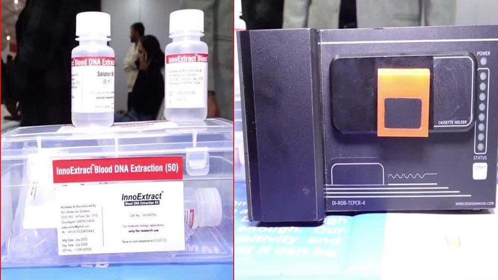 अब 45 मिनट में होगी DNA की जांच: मोहाली स्थित इंडियन इंस्टीट्यूट ऑफ साइंस एजुकेशन एंड रिसर्च यानी आइसर के सहयोग से इंडोक्स सॉल्यूशंस प्राइवेट लिमिटेड के संस्थापक जिम्मी भांबरा की टीम ने इस किट को तैयार किया है. वैज्ञानिक इस किट को पंचकूला में आयोजित इंडिया इंटरनेशनल साइंस फेस्टिवल में लेकर आए हैं. इस विशेष किट को आइसर की लैब में तैयार किया गया है. इसके तहत सैंपल तैयार करने के लिए इन्नो एक्सट्रैक्ट (तरल रूप) और लैब के काम के लिए विशेष यंत्र (इंस्ट्रूमेंट) विकसित किए गए हैं, जो चंद मिनटों में डीएनए (डीऑक्सीराइबोन्यूक्लिक एसिड) जांच की रिपोर्ट दे देंगे.
