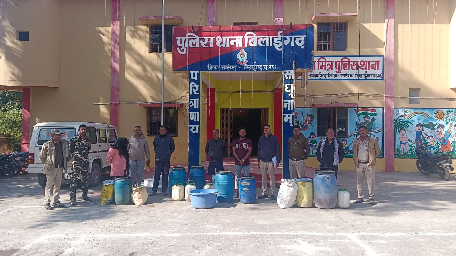 सारंगढ़ बिलाईगढ़ पुलिस कप्तान अंजनेय वार्ष्णेय के निर्देशन पर तथा अतिरिक्त पुलिस अधीक्षक  निमिषा पांडे, अनुविभागीय अधिकारी पुलिस  विजय ठाकुर के मार्गदर्शन में  थाना बिलाईगढ़ पुलिस   द्वारा थाना सरसींवा स्टॉप वह पुलिस कार्यालय स्टाफ के साथ संयुक्त कार्रवाई करते हुए संयुक्त टीम द्वारा दिनांक 10,12,25 को मुखबिर से सूचना पर थाना बिलाईगढ़ के ग्राम बगलोटा में भारी मात्रा में अवैध महुआ शराब रखकर बिक्री करने की सूचना पर रेड कार्यवाही कर आरोपीगण के कब्जे से कुल 311 लीटर हाथ भट्टी का बना महुआ शराब कीमती 31100 रू को समक्ष गवाह के जप्त कर आरोपीगण के विरुद्ध अपराध धारा 34(2)आबकारी एक्ट के तहत कार्यवाही कर विधिवत गिरफ्तार कर न्यायालय पेश किया गया ,जिसे मा,न्यायालय द्वारा न्यायिक रिमांड पर भेजा गया