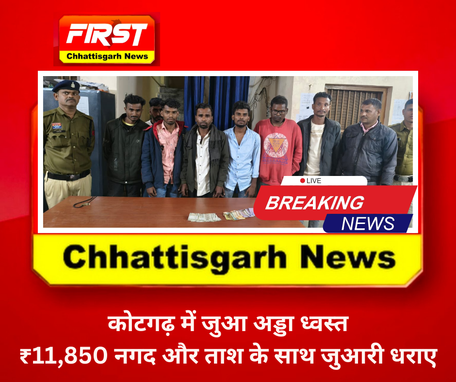 पुलिस से मिली जानकारी के अनुसार, पुलिस अधीक्षक श्री विजय कुमार पाण्डेय (IPS) के निर्देशन एवं अतिरिक्त पुलिस अधीक्षक श्री उमेश कुमार कश्यप के मार्गदर्शन में जुआ गतिविधियों पर लगातार सख्ती की जा रही है। इसी क्रम में थाना अकलतरा क्षेत्र में सूचना के आधार पर ग्राम कोटगढ़ में दबिश दी गई, जहां जुआ खेलते हुए आरोपियों को पकड़ा गया।