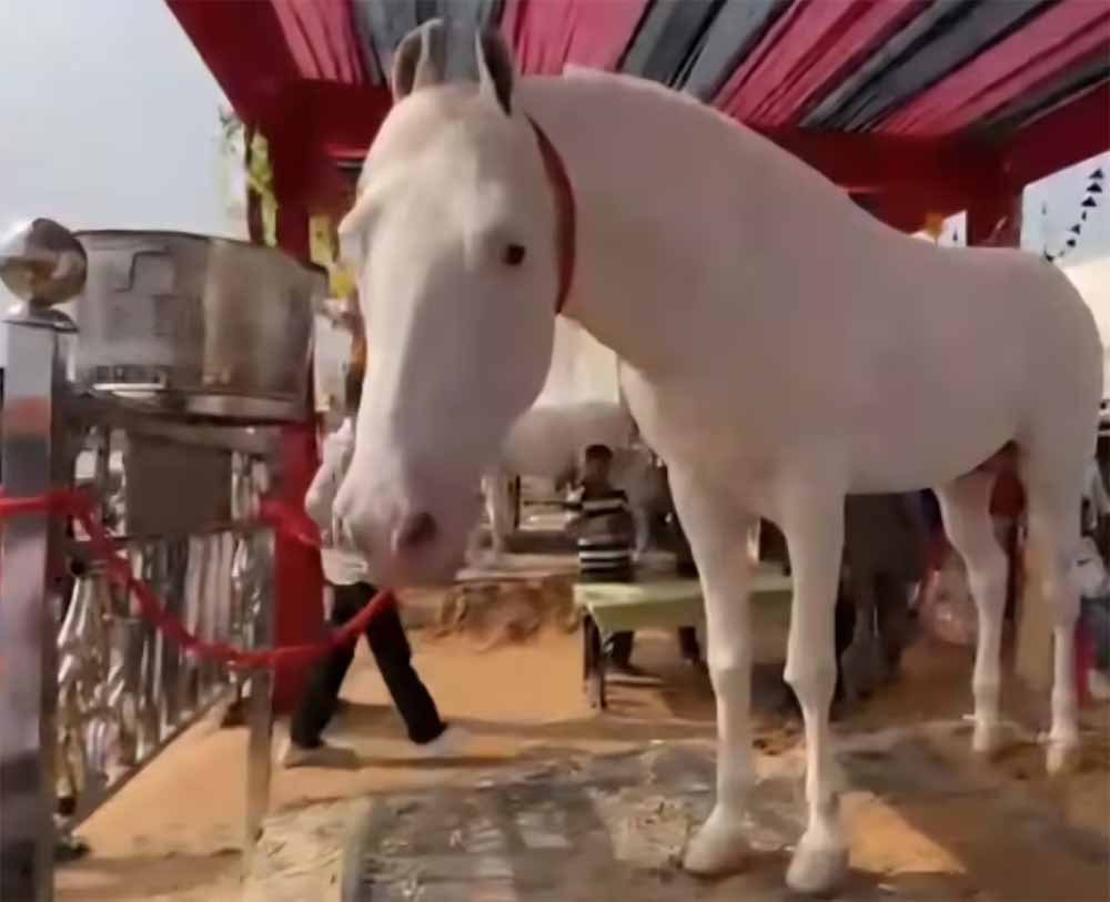 कुरुक्षेत्र के पिहोवा पशु मेले में 1 करोड़ का घोड़ा पहुंचा है। यह घोड़ा पंजाब के संगरूर से लाया गया है। घोड़े का नाम प्रताप रूप है, जो सिर से पैर तक पूरी तरह सफेद है। घोड़े की उम्र 28 महीने की है और यह 67 इंच ऊंचा है। लोग घोड़े के साथ फोटो खिंचवाने आ रहे हैं।