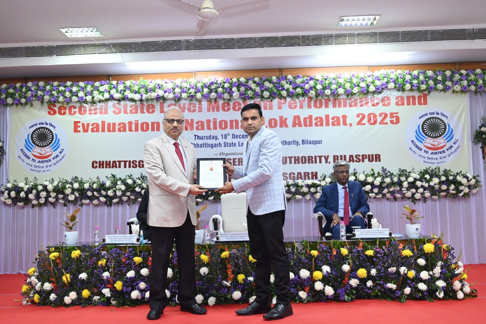 बिलासपुर/जांजगीर-चांपा। आम जनता को विधिक सहायता एवं कानूनी जागरूकता प्रदान करने के उत्कृष्ट कार्य के लिए जांजगीर-चांपा जिले के अधिकार मित्र लक्ष्मी प्रसाद जायसवाल को छत्तीसगढ़ उच्च न्यायालय बिलासपुर के माननीय मुख्य न्यायाधीश न्यायमूर्ति रमेश सिन्हा द्वारा सम्मानित किया गया।