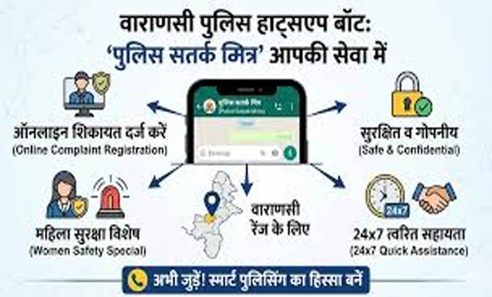 वाराणसी, जौनपुर, गाज़ीपुर और चंदौली ज़िलों के लोग अब पुलिस डिपार्टमेंट के लॉन्च किए गए नए WhatsApp चैटबॉट के ज़रिए बिना नाम बताए जानवरों की तस्करी, गैर-कानूनी शराब से लेकर ड्रग्स व महिलाओं के खिलाफ अपराधों की रिपोर्ट कर सकते हैं. इस बात की जानकारी एक पुलिस अधिकारी ने एक न्यूज एजेंसी को दी.
