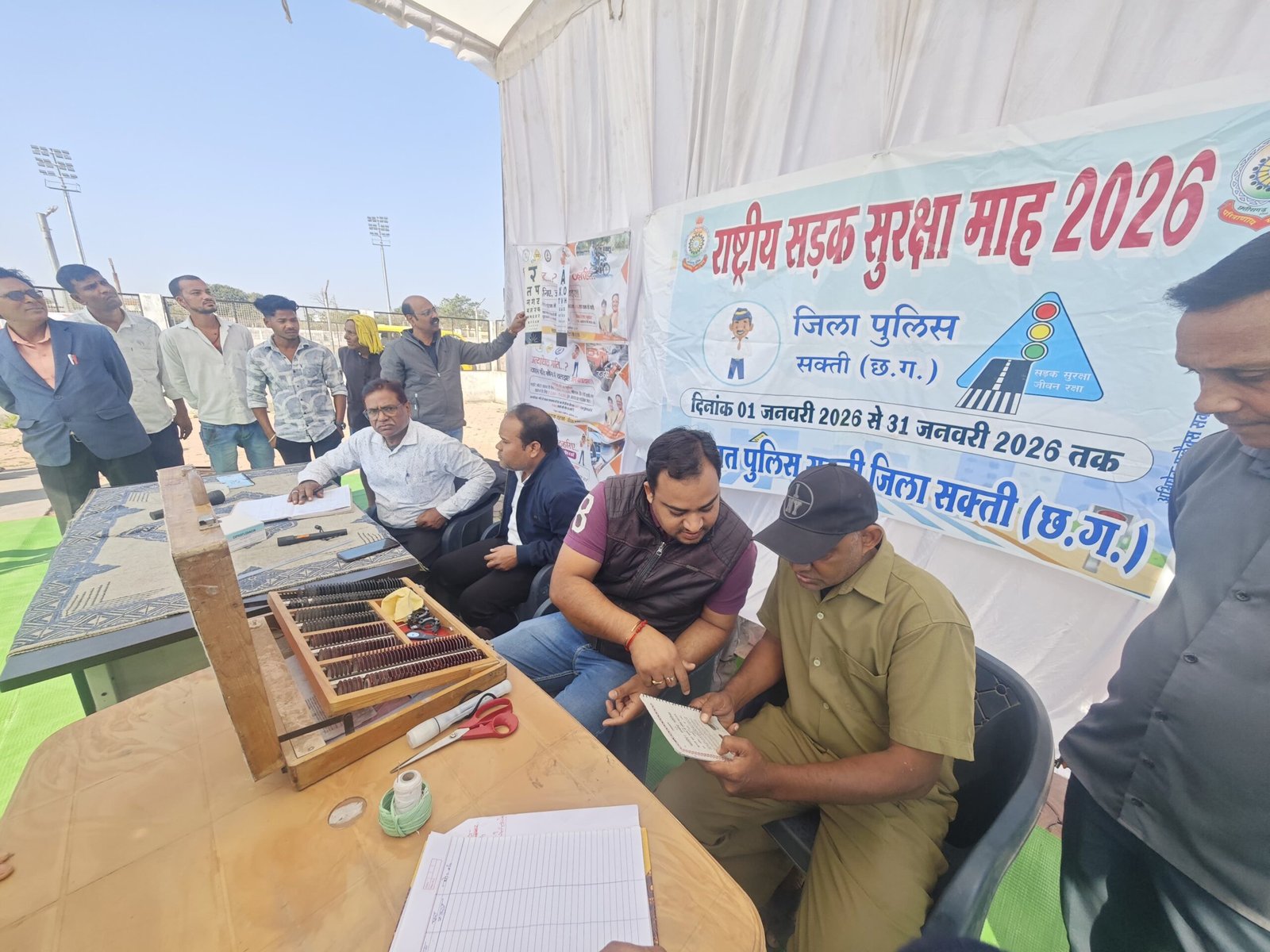राष्ट्रीय सड़क सुरक्षा माह 2026 के तहत सक्ती में वाहन चालकों के लिए नेत्र एवं स्वास्थ्य परीक्षण शिविर आयोजित