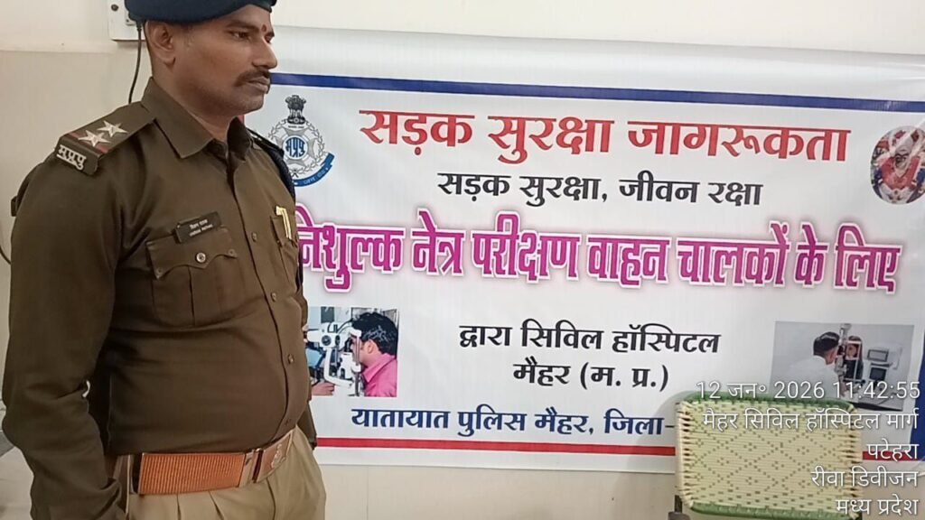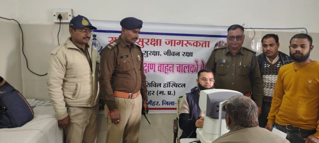 मैहर यातायात पुलिस का बड़ा कदम, सड़क सुरक्षा जागरूकता के तहत आंखों की मुफ्त जांच