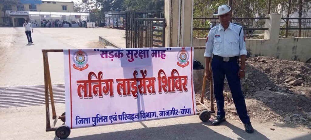 37वें सड़क सुरक्षा माह के अंतर्गत यातायात नियमों के पालन और सड़क दुर्घटनाओं में कमी लाने के उद्देश्य से यातायात पुलिस जांजगीर-चांपा द्वारा लगातार जनजागरूकता कार्यक्रम आयोजित किए जा रहे हैं। इसी कड़ी में 13 जनवरी 2026 को पुलिस नियंत्रण कक्ष जांजगीर में लर्निंग लाइसेंस एवं HSRP (हाई सिक्योरिटी रजिस्ट्रेशन प्लेट) कैम्प का सफल आयोजन किया गया।