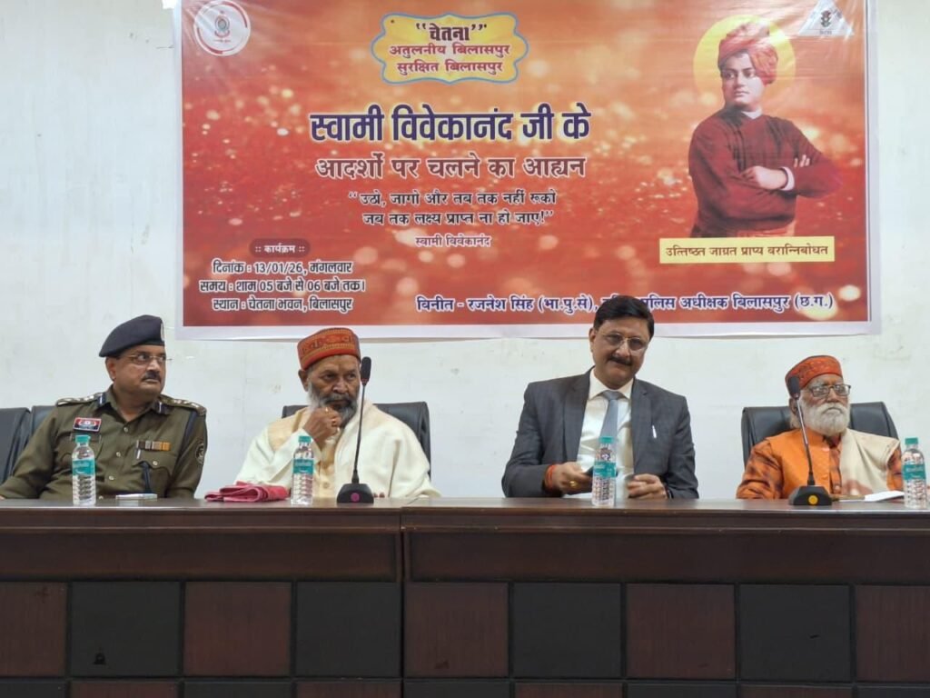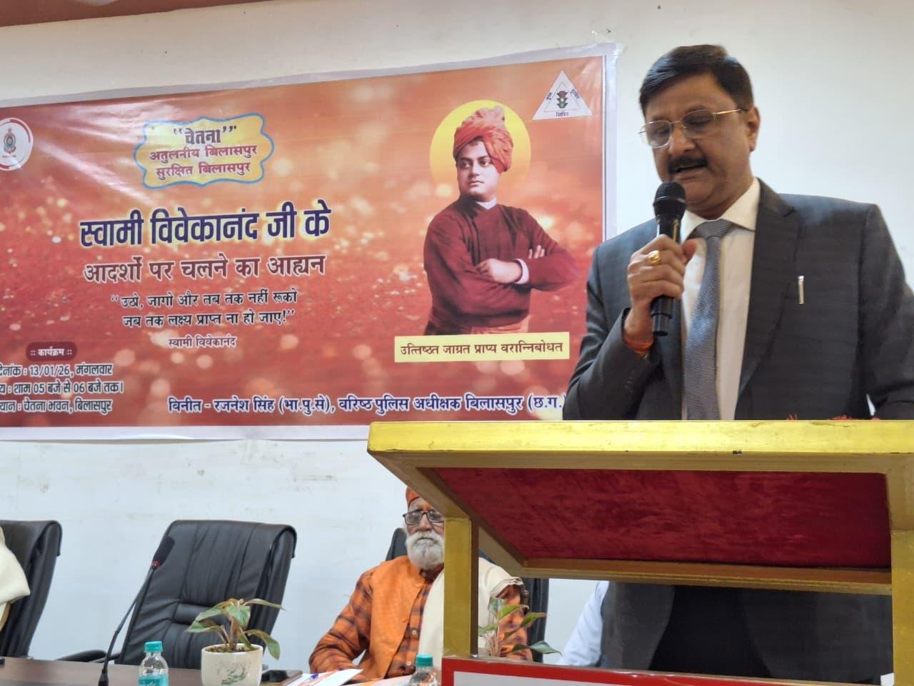 स्वामी विवेकानंद जी के जन्मदिवस के अवसर पर “उठो, जागो और तब तक मत रुको जब तक लक्ष्य प्राप्त न हो जाए” के संदेश को आत्मसात करने का आह्वान किया गया। बिलासपुर के वरिष्ठ पुलिस अधीक्षक  रजनेश सिंह (आईपीएस) द्वारा संचालित बहुउद्देशीय चेतना अभियान के अंतर्गत पुलिस लाइन स्थित चेतनाहाल में एक प्रेरणादायी गोष्ठी का आयोजन किया गया।