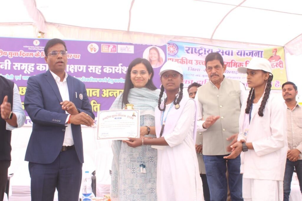 सारंगढ़ बिलाईगढ़,स्वामी विवेकानंद जी के जयंती पर्व में राष्ट्रीय युवा दिवस के अवसर पर सारंगढ़ ब्लॉक के हायर सेकेंडरी स्कूल हरदी में महिला बाल विकास विभाग एवं समाज कल्याण विभाग के सयुंक्त तत्वावधान में नशा मुक्ति एवं सामाजिक जागरूकता को लेकर विविध कार्यक्रमों का आयोजन किया गया। इस अवसर पर नशा मुक्त समाज के प्रचार-प्रसार हेतु रंगोली प्रतियोगिता एवं भाषण प्रतियोगिता आयोजित की गई, जिसमें भाग लेने वाले विद्यार्थियों को पुरस्कार देकर सम्मानित किया गया।