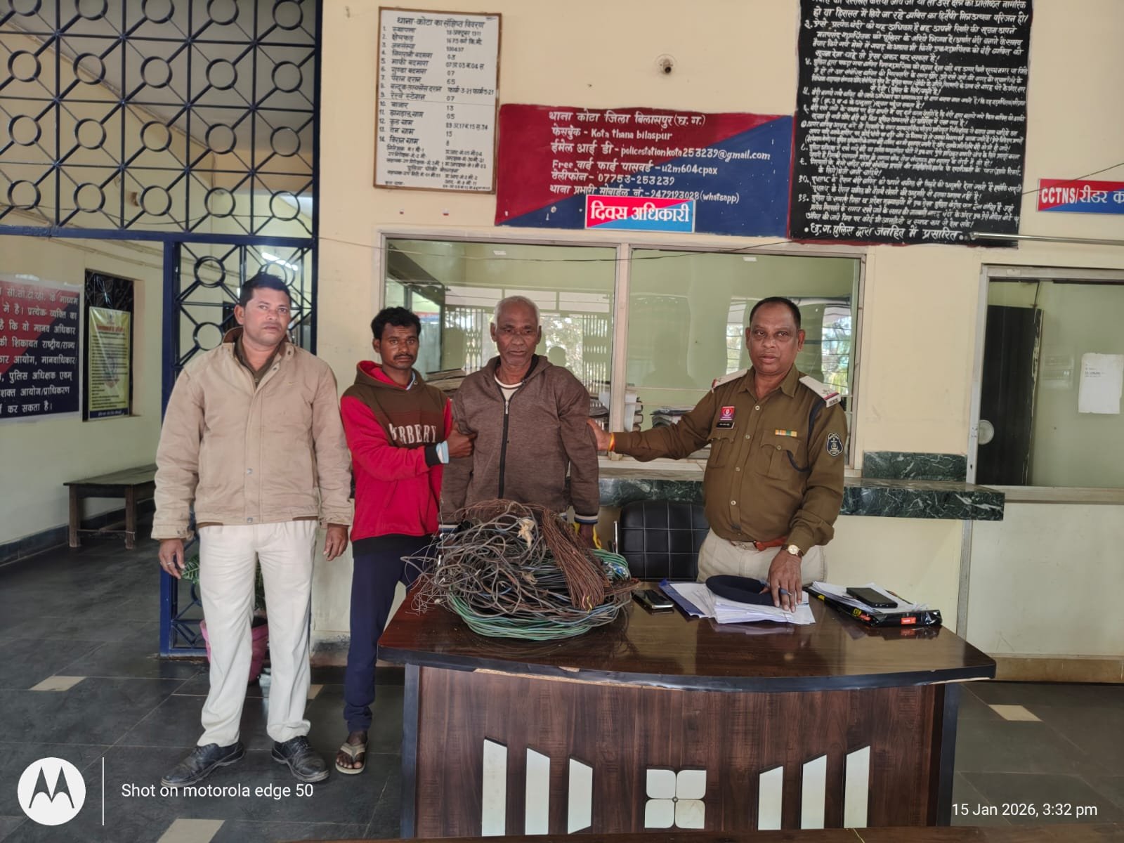 गिरफ्तार आरोपियों के कब्जे से 02 बंडल जी.आई. तार एवं 02 बंडल बिजली वायर जप्त किए गए हैं।