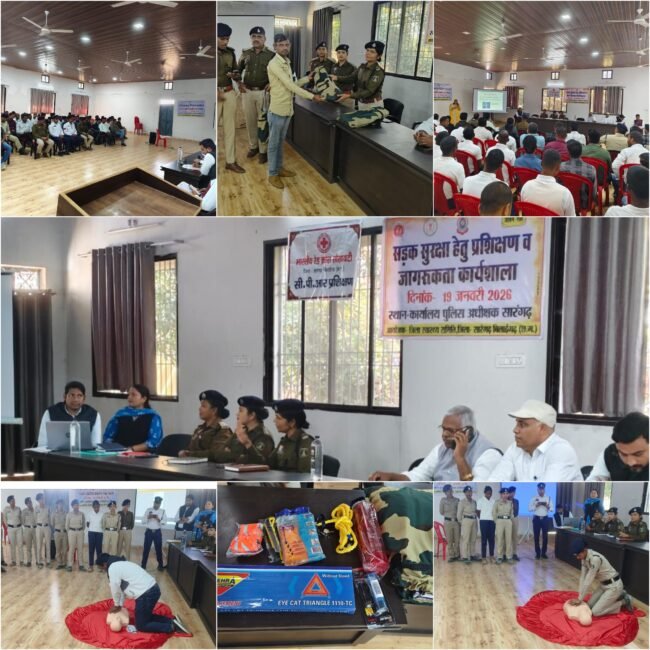 सारंगढ़।दिनांक 19.01.2026 को पुलिस अधीक्षक महोदय जिला सारंगढ़ बिलाईगढ़ के आदेशानुसार अतिरिक्त पुलिस अधीक्षक एवं SDOP महोदय के मार्गदर्शन से स्वास्थ्य विभाग व रेडक्रॉस सोसायटी के तत्वावधान में ट्रैफ़िक मितानों व पुलिस विभाग के अधिकारी कर्मचारियों को प्राथमिक उपचार(first aid),राहगीर योजना, 1.5 लाख तक कैशलेस ट्रीटमेंट, eDAR एंट्री के संबंध में पुलिस अधीक्षक कार्यालय में प्रशिक्षण दिया गया।