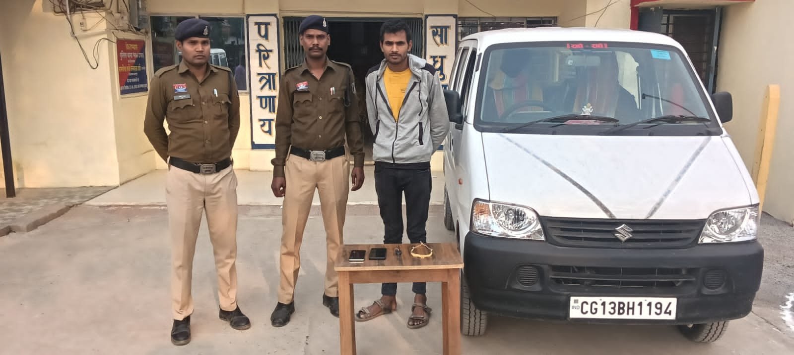 पुलिस टीम द्वारा तत्परता से कार्यवाही करते हुए आरोपी धरमदास चंद्रा पिता रेशमलाल चंद्रा, निवासी ग्राम सिंघरा, हाल मुकाम रायगढ़ को धोखाधड़ी में प्रयुक्त सोने के जेवरात, रुपये-पैसा एवं घटना में प्रयुक्त वाहन के साथ विधिवत गिरफ्तार किया गया।