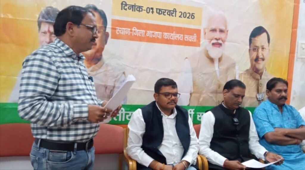 सक्ती – भारतीय जनता पार्टी द्वारा केन्द्रीय बजट 2026 पर प्रेसवार्ता हुआ जिसमें बजट पर बोलते हुए जिला सहकारी केंद्रीय बैंक बिलासपुर के अध्यक्ष रजनीश सिंह जी ने कहा कि यह बजट किसान की आय बढ़ाने वाला बजट है, भारत को विकसित भारत बनाने वाला बजट है, लोगों को बेहतर स्वास्थ्य सुविधाएं देने वाला बजट है, भारत को तकनीकी रूप से सशक्त बनाने वाला बजट है व्यापारियों को टैक्स के झंझटों से राहत देने वाला बजट है महिलाओं को समान अवसर देने वाला बजट है रजनीश सिंह ने आगे कहा कि इस बजट में युवाओं के लिए पांच नई यूनिवर्सिटी टाउनशिप खोले जाने का प्रावधान किया गया है