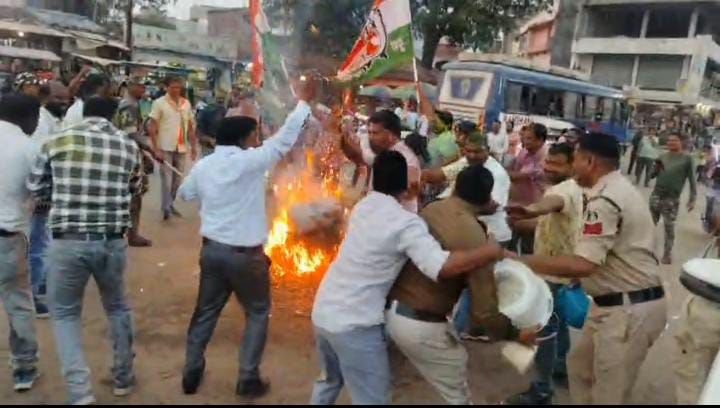 कुनकुरी में कांग्रेस का होली मिलन समारोह, केंद्र सरकार की नीतियों के खिलाफ PM मोदी का पुतला दहन