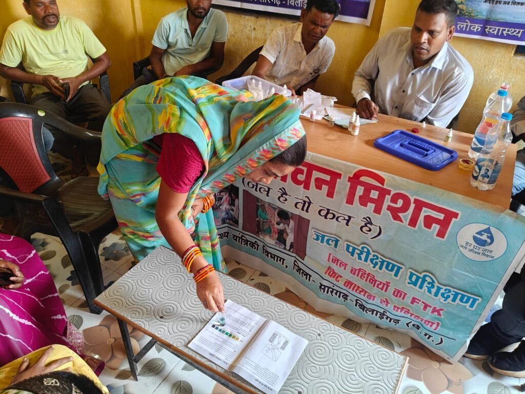 ग्रामीण और जल वाहिनियों को एफटीके किट से जल परीक्षण करना सिखाया गया
