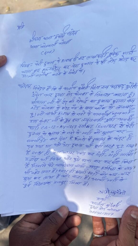 कोरबा ब्रेकिंग: नशे में पूर्व गृहमंत्री के बेटे का हंगामा, दुकान में घुसाई कार, थाने से गाड़ी लेकर फरार